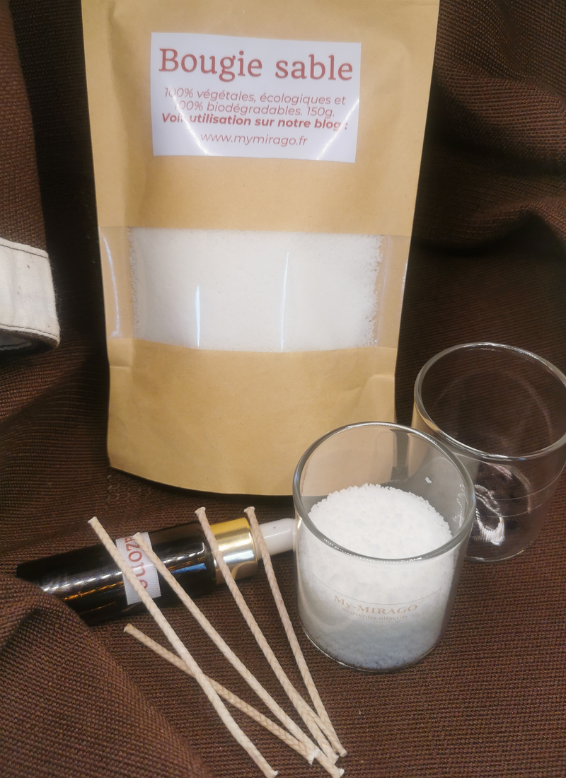 La bougie sable se présente sous forme de fines granules de cires végétales 100% naturelles...