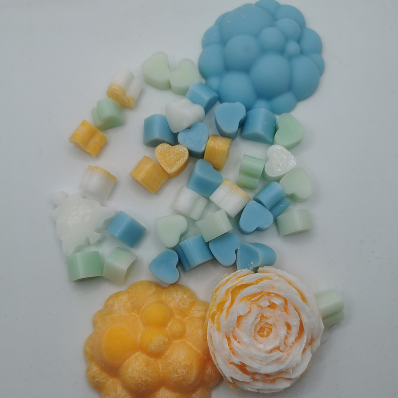 Dés de cires végétales fragrances yuzu pour parfumer vos armoires de vêtements ou de chaussures.